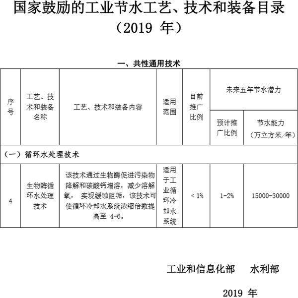 融極環?!吧锩秆h水處理技術”入選《國家鼓勵的工業節水工藝、技術和裝備目錄(2019年)》